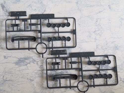 戦車の基部やキャタピラの走行部分に使うB2ランナー。同じものが2枚入っており、対いなるようになっている。