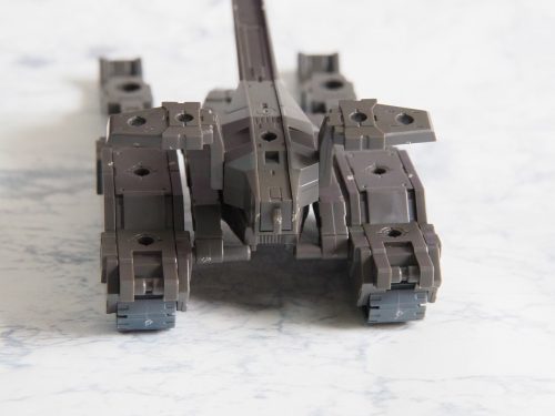 陸のエグザビークルであるタンクはリアルの戦車と同じく、車高が低く平べったい雰囲気を見事に再現しており、各所に3ミリ穴が開いているので、オリジナルの武装を取り付けたり、最初から自分なりの支援兵器を設計したりすることも出来るだろう。