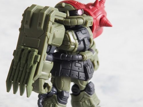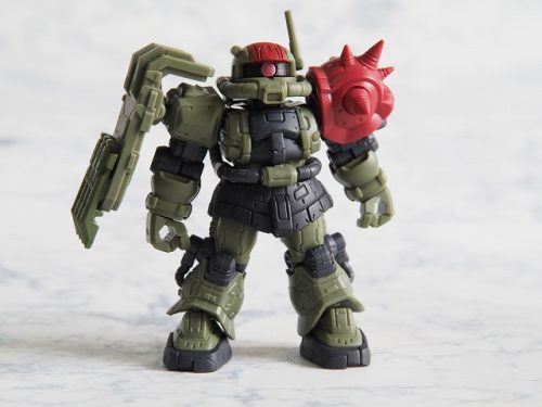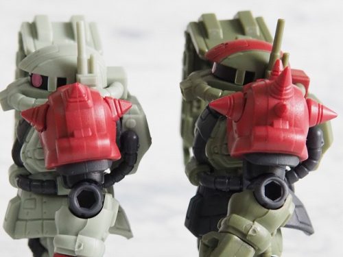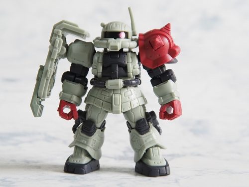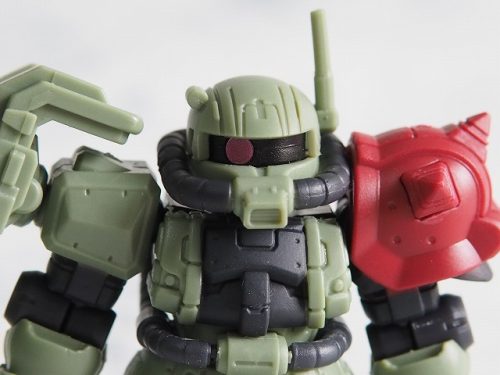 SDガンダムフルカラーステージ時代にザクバリエーションSP(51弾)と言うのがあったが、こうしてザクⅡF型が4機もラインナップされるとザクバリエーションSPを思い出してしまう。ザクのみがラインナップされたザクバリエーションSPは、今や当たり前になった改造の走りのようなもので、当時は「ビルドシステム」とか呼んでいた。