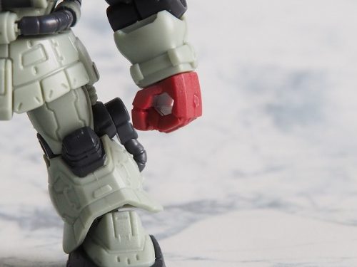 機体の色が薄い緑のため、やはり拳が目立つ。
