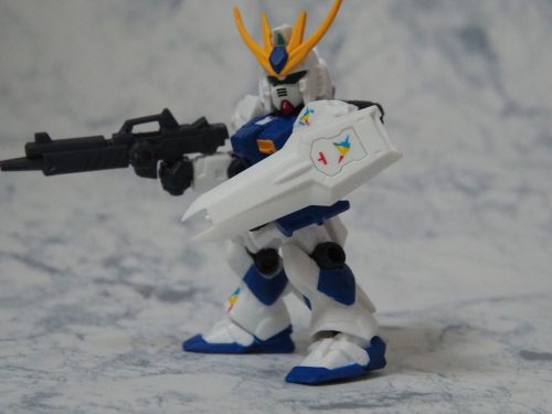 今弾のメインを飾るνガンダム。カプセル色は青。