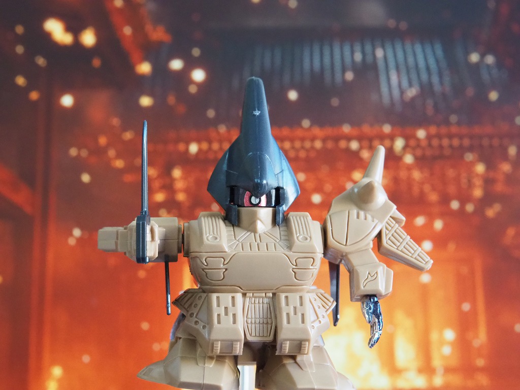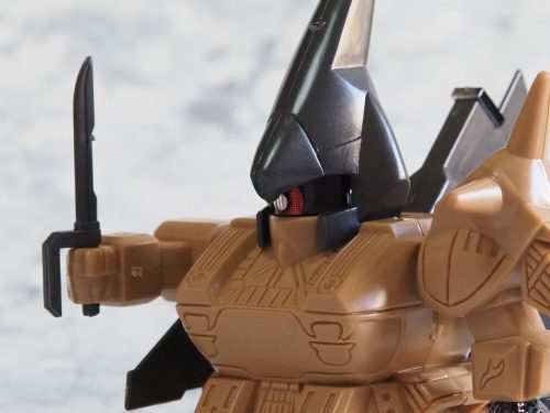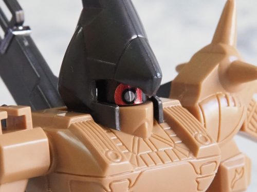 モビルスーツアンサンブルのように後ろのレバーでモノアイを動かせる。このギミックが1990年に取り入れられていたなんてちょっと驚きだね。