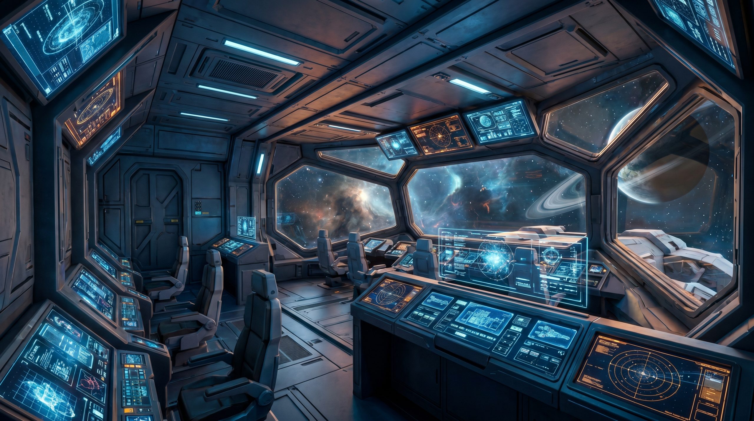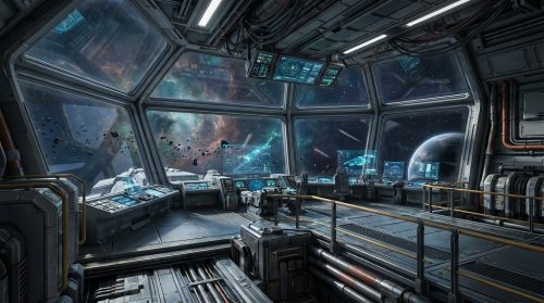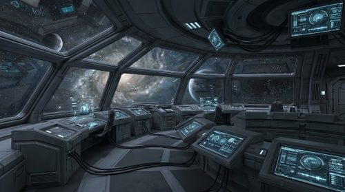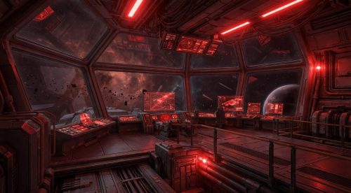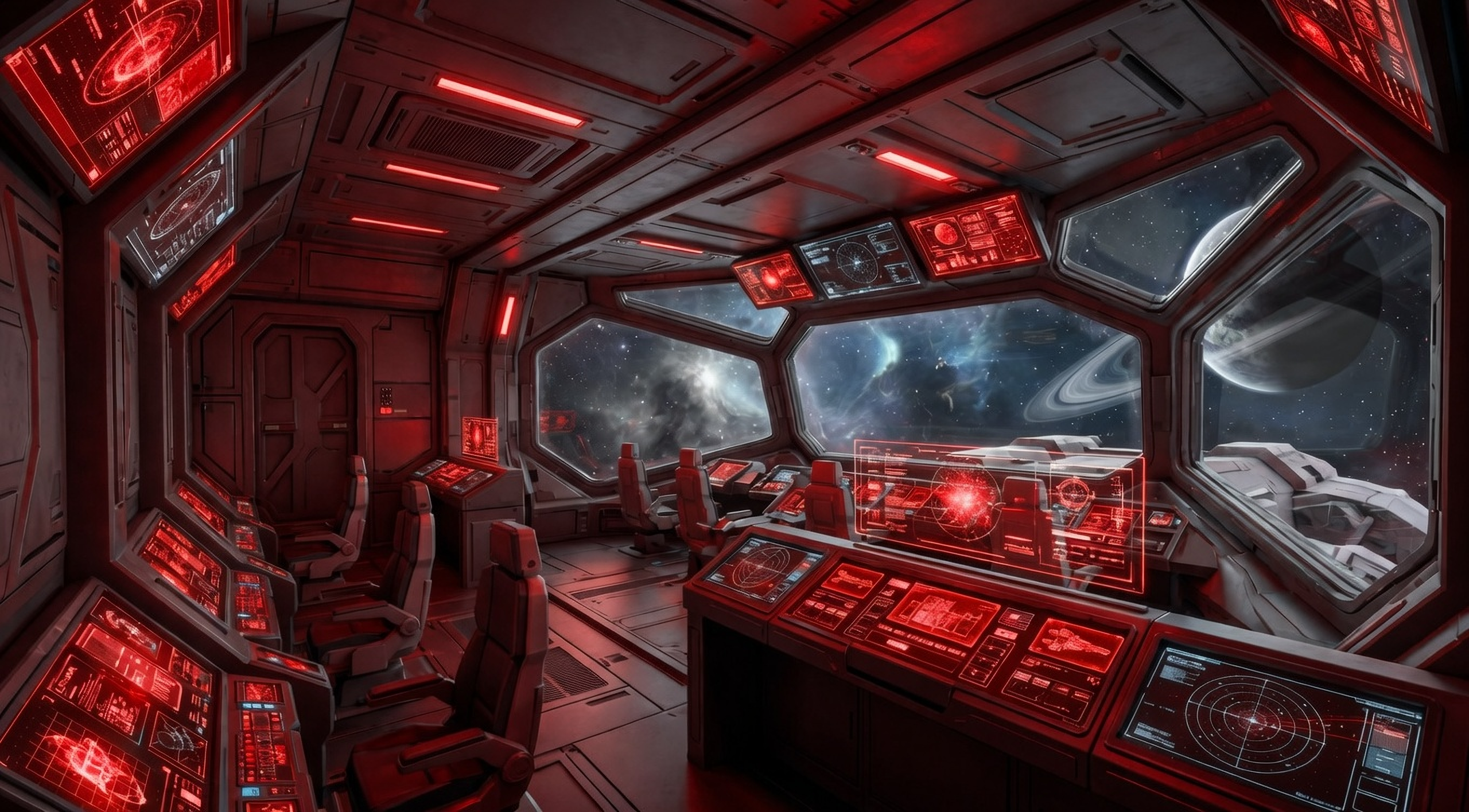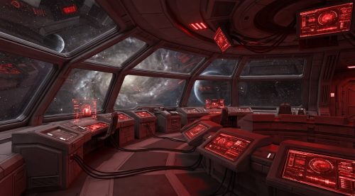 未来的な機械が並び戦闘時には艦長が攻撃や回避の指示を出し、艦内が一気に緊迫感に包まれるシーンは印象的ですよね。今回はそんな戦艦のブリッジ内部の画像を通常版と第一種戦闘配備版の2種類を作ってみました。