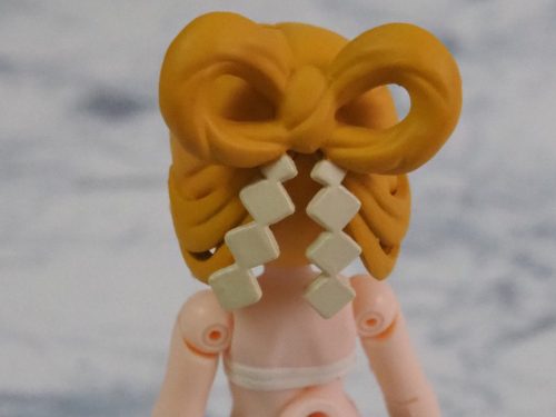 髪型はとても凝っていて、髪飾りも和風のものとなっている。